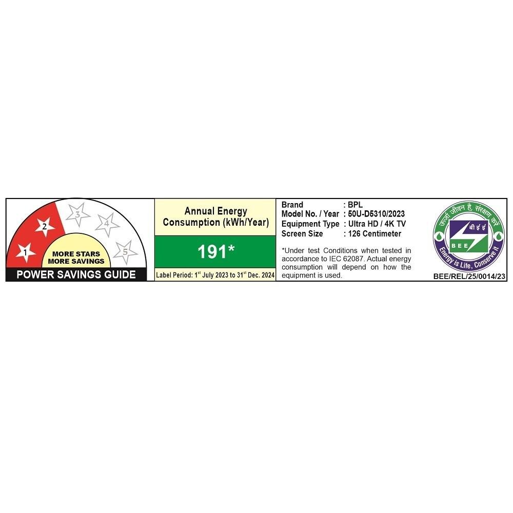 BPL 127 cm (50 inch) Ultra HD (4K) Google Smart TV with Dolby Vision and Atmos, 50U-D5310