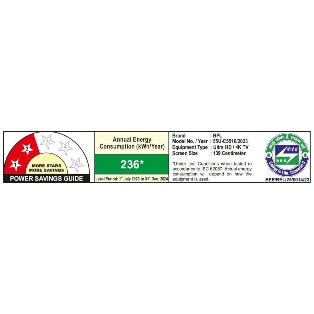 BPL 139 cm (55 inch) Ultra HD (4K) Google Smart QLED TV with Dolby Vision and Atmos, 55U-C5510 DX
