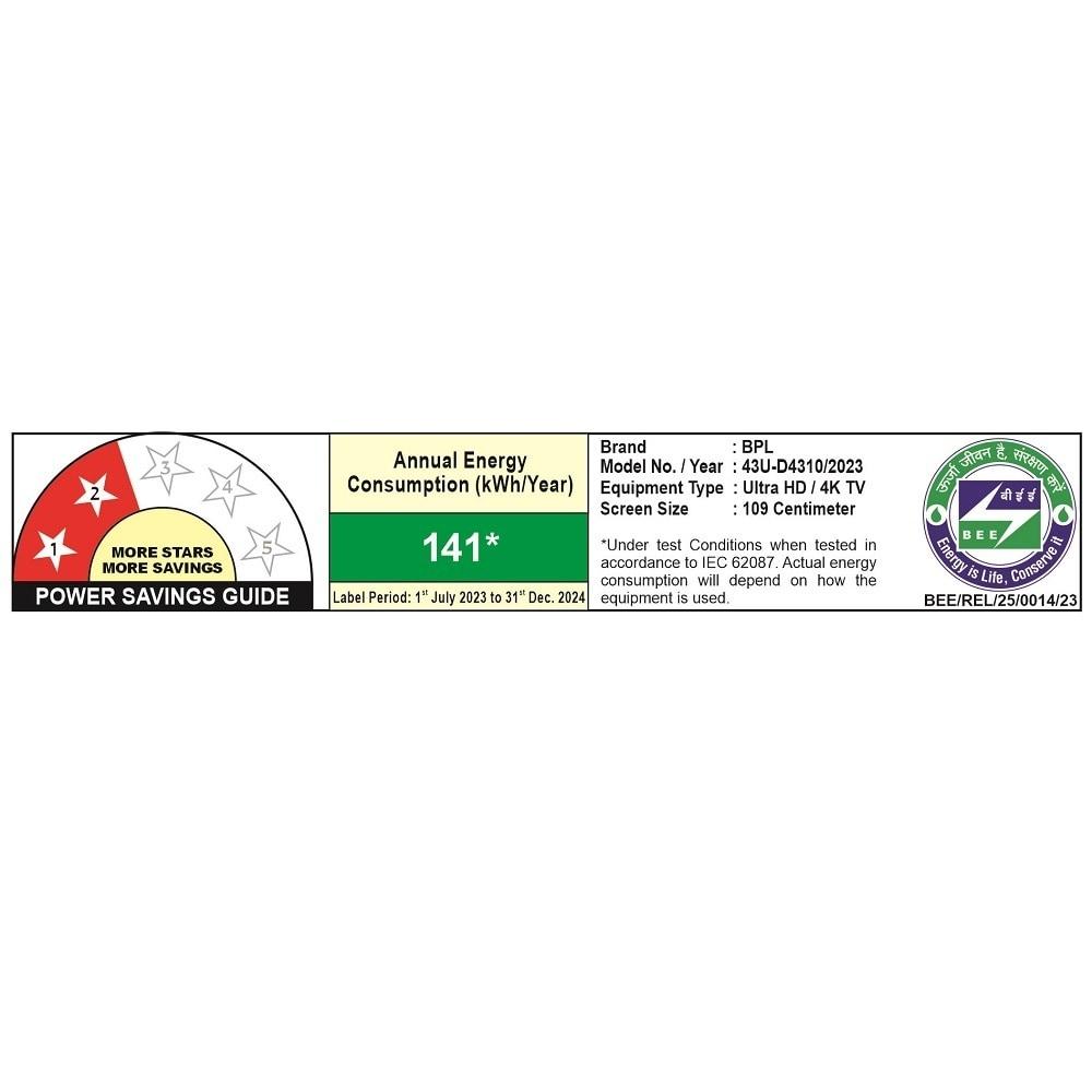 BPL 108 cm (43 Inch) Ultra HD Android Smart LED TV, 43U-D4310