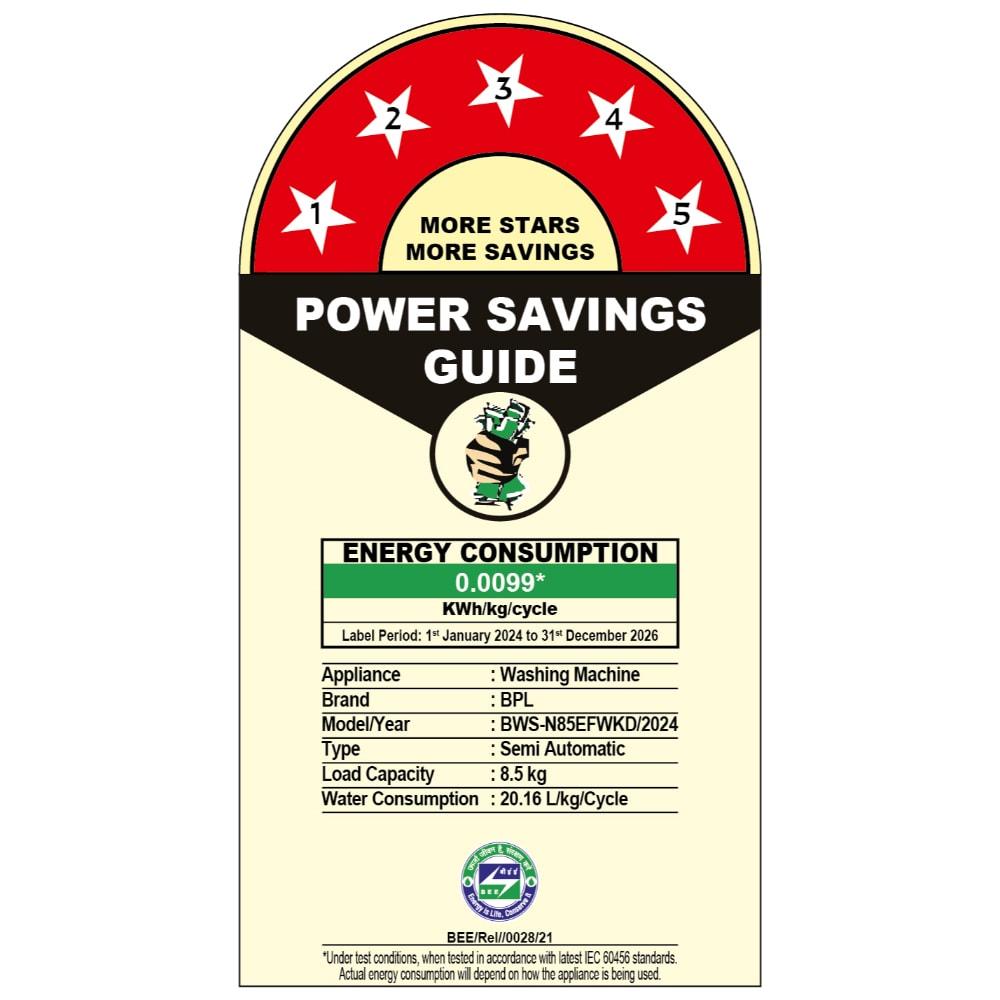 BPL 8.5 Kg Top Loading Semi Automatic Washing Machine, BWS-N85EFWKD, Gray & Black