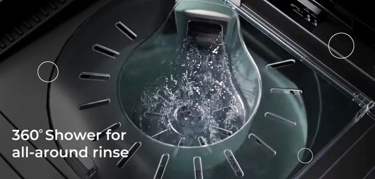 Wash with complete assurance of residue-free, clean clothes. The 360° Shower mechanism distributes water from all directions during the spin cycle, ensuring effective detergent removal.