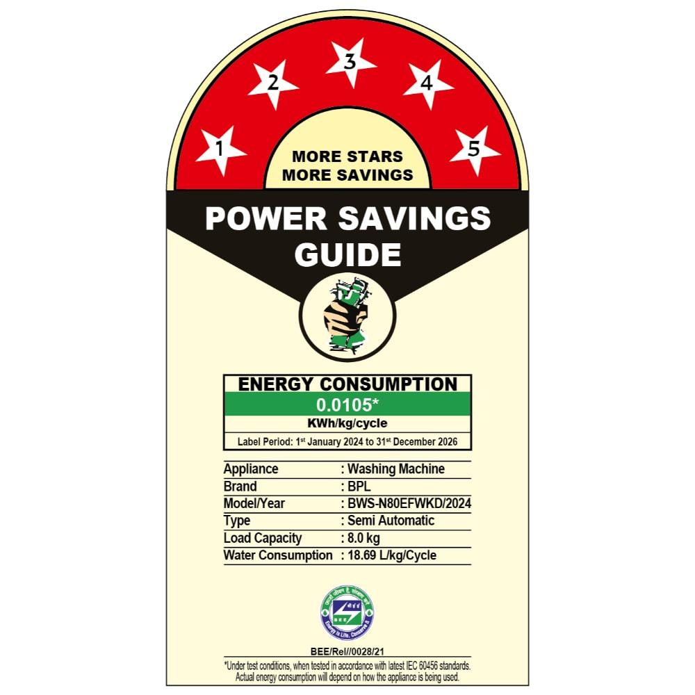BPL 8 Kg Top Loading Semi Automatic Washing Machine, BWS-N80EFWKD, Gray & Black