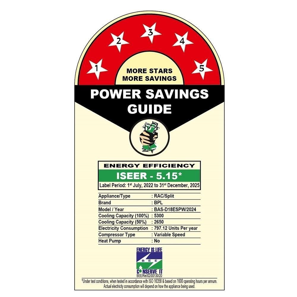 BPL Inverter Split AC, 1.5T 5 Star, 5 Filter AC - BAS-D18ESPW